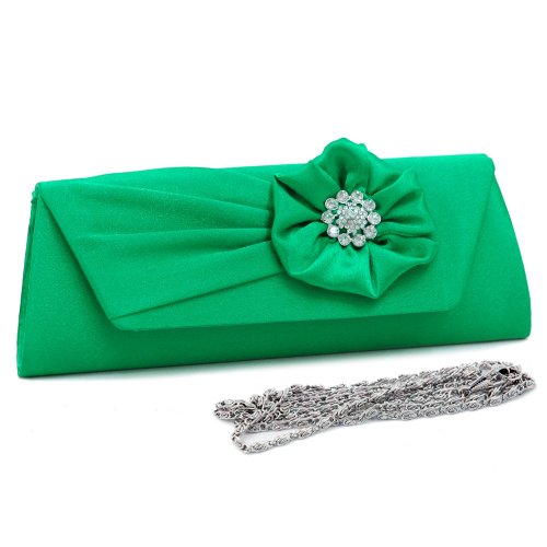 Evening Bag Clutch W/ Rhinestone & Flower Accent Satin Green Reviews